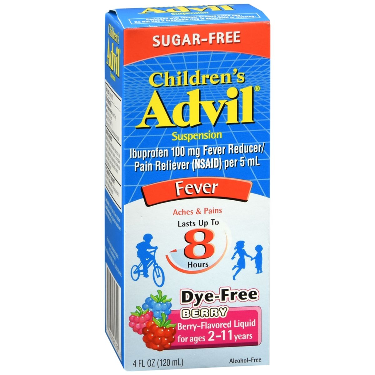 Active Ingredients In each 5 mL: Ibuprofen 100 mg (NSAID) (nonsteroidal anti-inflammatory drug) Purpose Fever Reducer, Pain Reliever