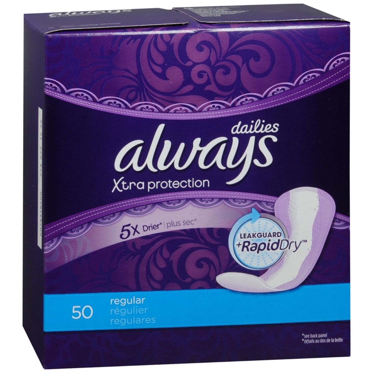 Edge2Edge adhesive helps keep the liner in place. LeakGuard Core + barriers help keep you dry. Super soft cover. 5x drier (vs. Always Thin).