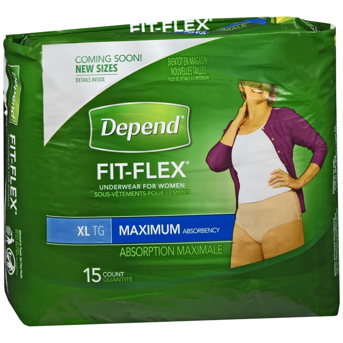 Step in. Slip off. Look for the oval below the waistband – the oval indicates the back. Discard in trash. Do not flush.