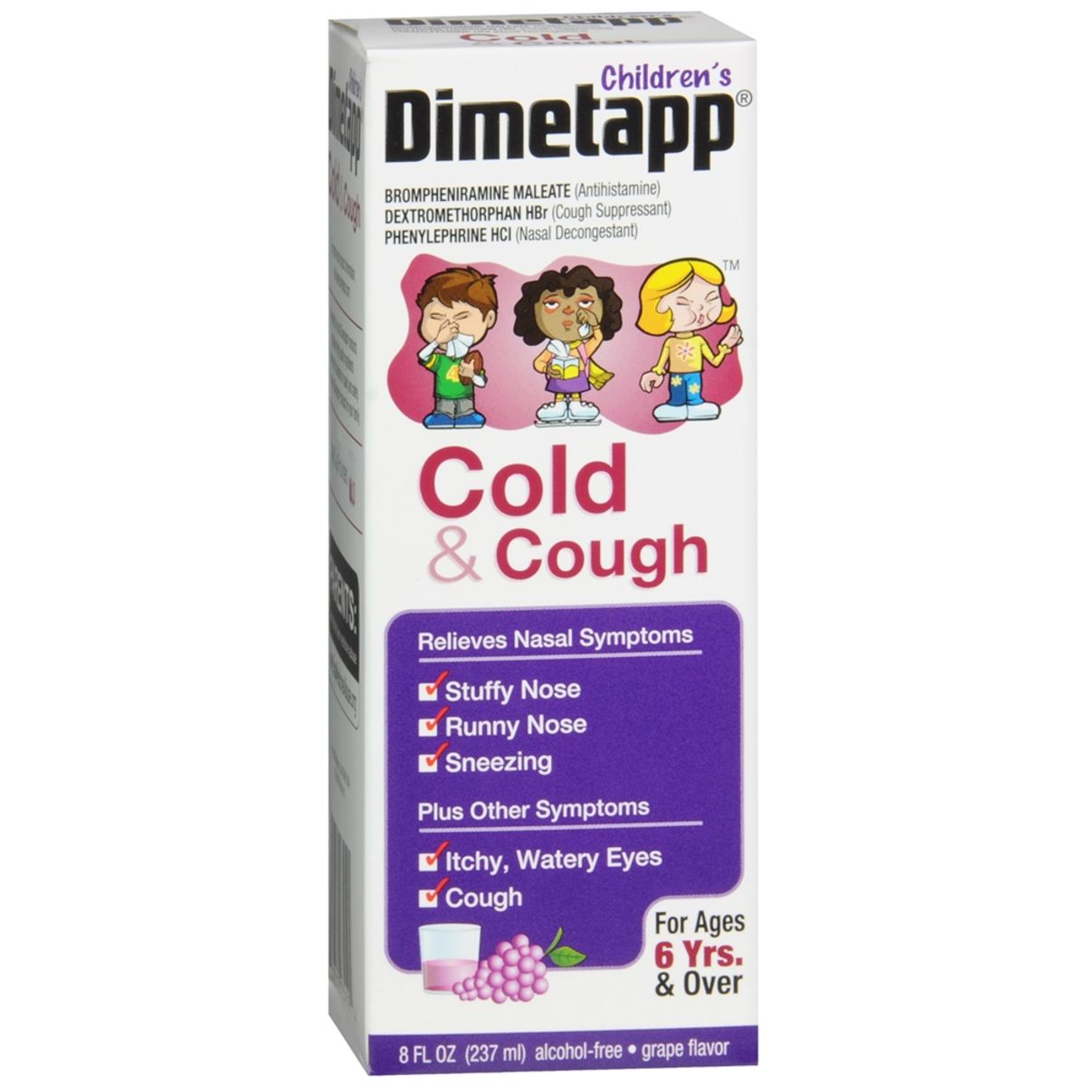 Active Ingredients Each 5 mL Tsp: Brompheniramine Maleate, USP 1 mg; Dextromethorphan HBr, USP 5 mg; Phenylephrine HCl, USP 2.5 mg Inactive Ingredients Anhydrous Citric Acid; Artificial Flavor; FD&C Blue No. 1; FD&C Red No. 40; Glycerin; Propylene Glycol; Purified Water; Sodium Benzoate; Sodium Citrate; Sorbitol Solution; Sucralose; Each Teaspoon Contains: Sodium 3 mg Directions Do not take more than 6 doses in any 24-hour period. Adults and children 12 years and over: 4 tsp every 4 hours. Children 6 to under 12 years: 2 tsp every 4 hours. Children under 6 years: do not use. Store at 20-25 degrees C (68-77 degrees F). Purpose Antihistamine, Cough Suppressant, Nasal Decongestant