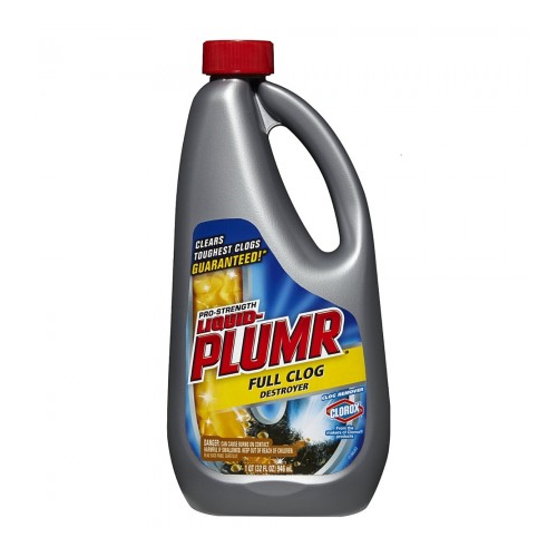 Liquid-Plumr Pro-Strength Clog Remover, Full Clog Destroyer, clears away grease, hair, gunk and soap scum, leaving your pipes free and clear. This powerful drain cleaner is specially formulated to take on the toughest clogs. Its thick gel cuts through standing water and attacks built up hair, gunk, grease and soap scum. It gets to work fast, eliminating stubborn blockages and leaving your drain free flowing and clog free. It???s also safe for garbage disposals, septic systems and pipes, including PVC, plastic, copper and old pipes. Keep your drains clear with Liquid-Plumr.