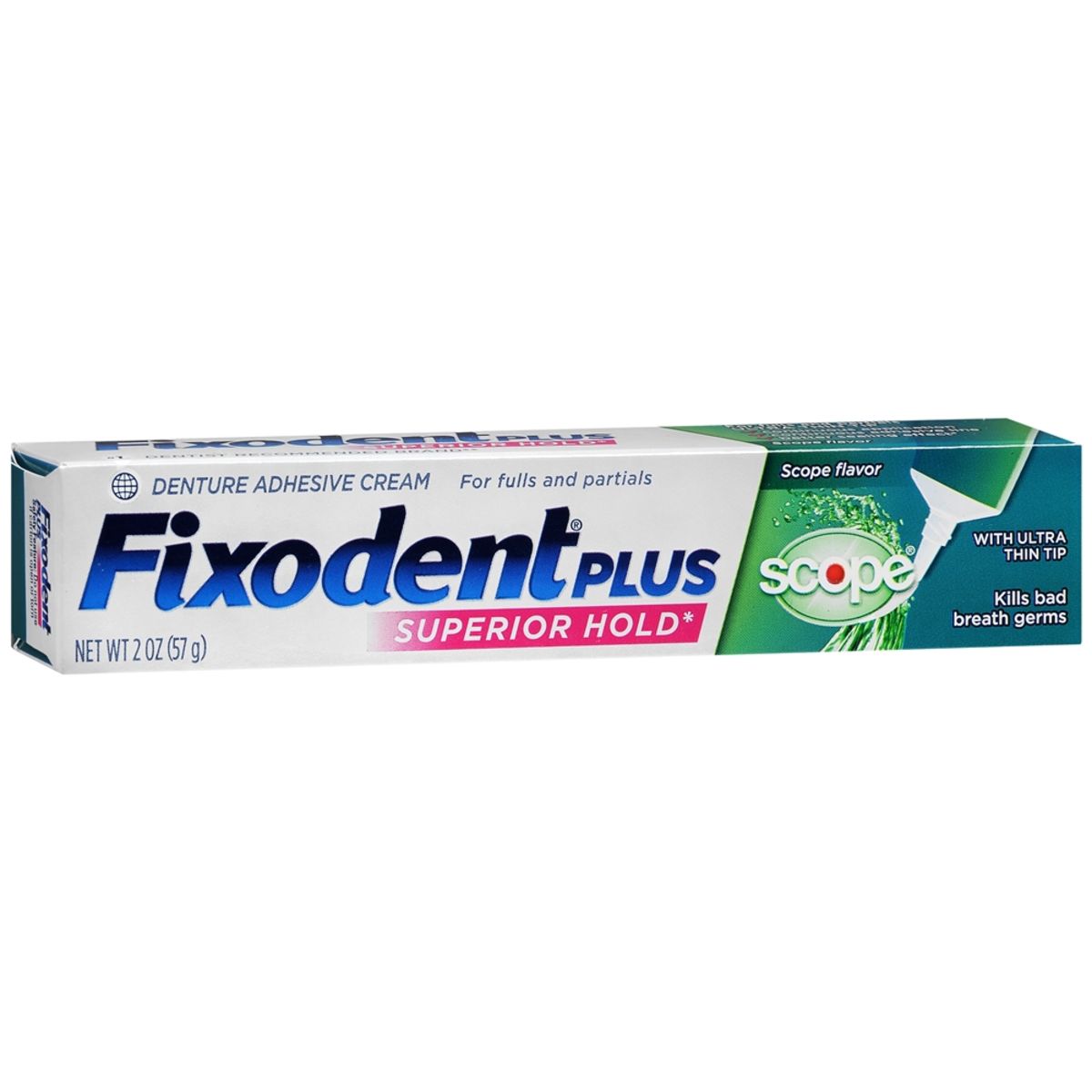 Fixodent and forget it! Active Ingredients Calcium/Zinc PVM/MA; Mineral Oil; Petrolatum; Cellulose Gum; Silica; Flavor; Sodium Saccharin; Yellow 6 Lake; Red 27 Lake Uses For fulls and partials. Ultra thin tip Continuous application and adhesive line. Better sealing effect.* Superior hold.* Kills bad breath germs. *vs. Fixodent Complete Original. When used as directed. Purpose Oral Care