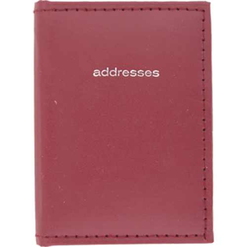 4 x 3 1/16″, 52 count. Assorted colors with gold hot stamp. Paddedvinyl covers, 100 gold leafed pages. Pages for anniversaries, important numbers, area code map. Open side.Assorted