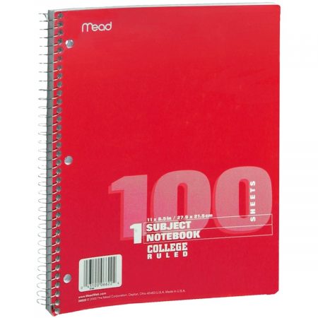 11 x 8.5 in (27.9 x 21.5 cm). 100 sheets. College ruled.
