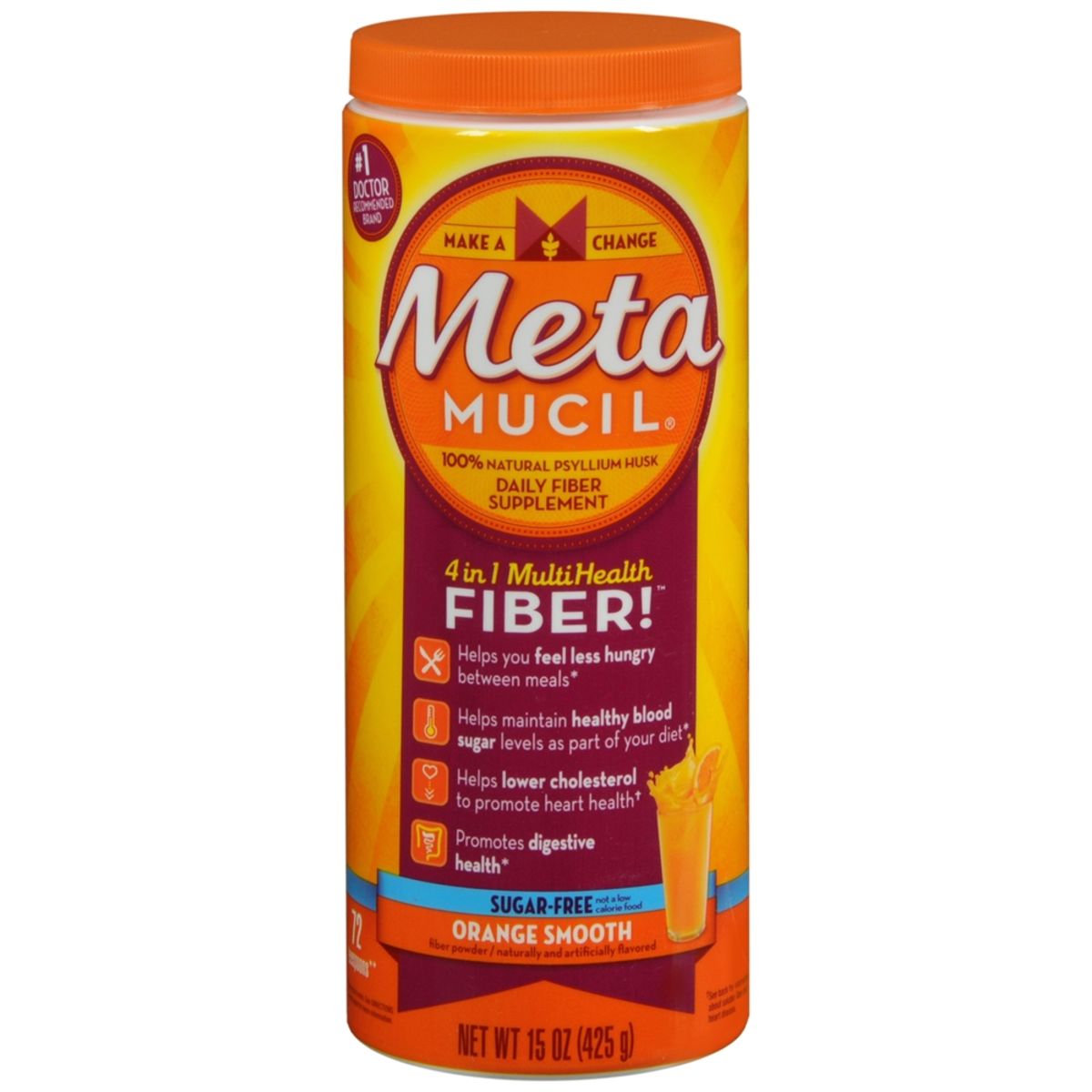 1 Rounded Teaspoon: Calories 20; Total Carb. 5 g; (Dietary Fiber 3 g [Soluble Fiber 2 g], Sugars 0 g); Iron 0.7 mg; Sodium 5 mg; Potassium 35 mg; Psyllium Husk; Maltodextrin; Citric Acid; Natural and Artificial Orange Flavor; Aspartame; Yellow 6