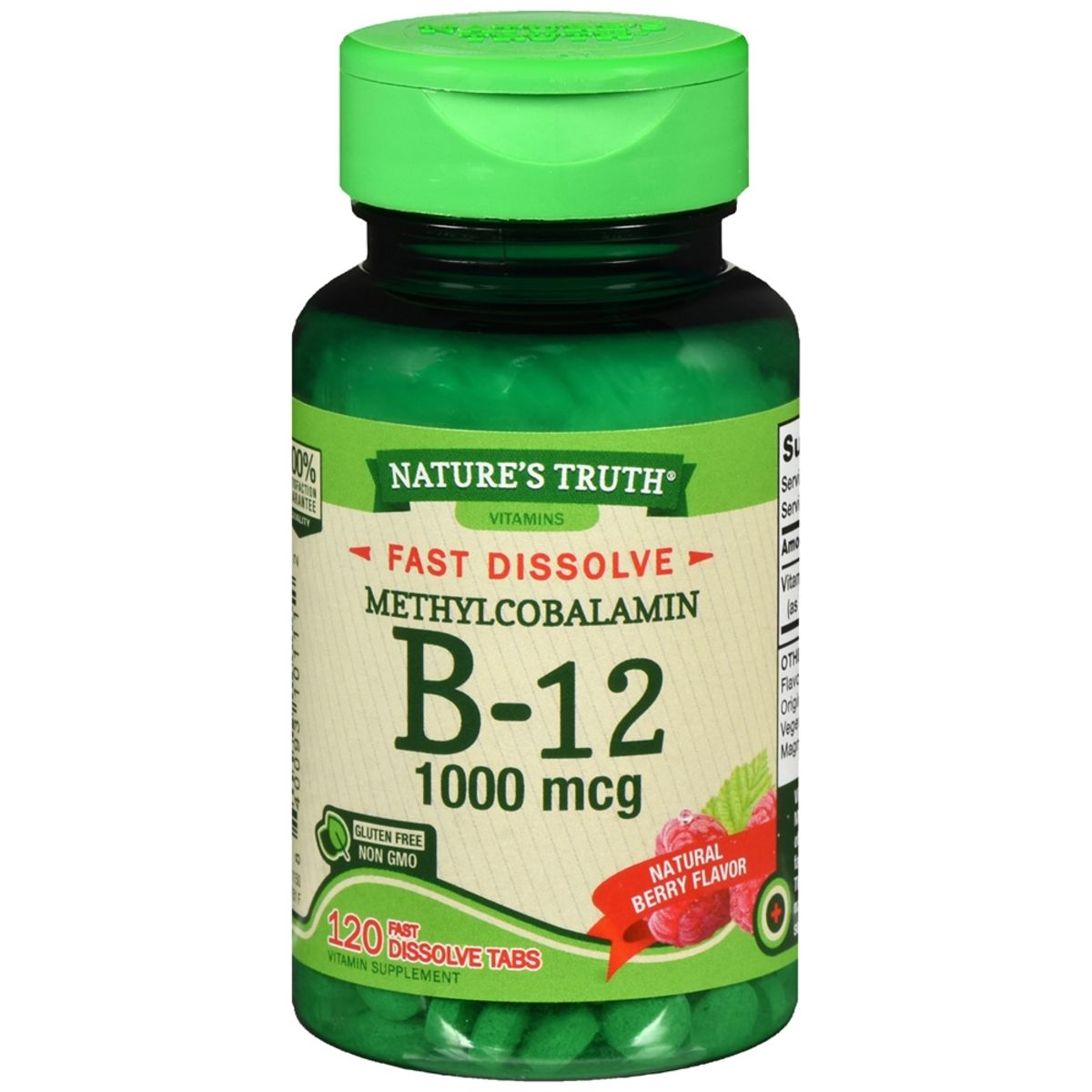 Active Ingredients 1 Fast Dissolve Tablet: Vitamin B-12 (Methylcobalamin) 1,000 mcg; Mannitol; Natural Flavors; Beet Root Powder; Vegetable Stearic Acid; Cellulose (Plant Origin); Dextrose; Crospovidone; Vegetable Magnesium Stearate; Sucralose Directions For adults, take one (1) fast dissolve tablet daily, preferably with a meal. Purpose Vitamins & Dietary Supplements Warnings If you are pregnant, nursing or taking any medications, consult your doctor before use. If any adverse reactions occur, immediately stop using this product and consult your doctor. Keep out of reach of children. Store in a cool, dry place.
