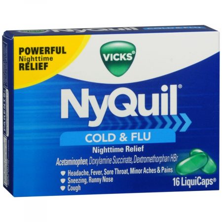 Temporarily relieves common cold/flu symptoms: cough due to minor throat and bronchial irritation, sore throat, headache, minor aches and pains, fever, runny nose and sneezing. Powerful nighttime relief.
