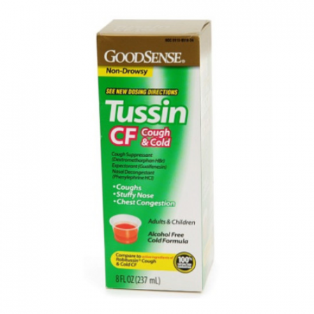 Tussin CF Cough and Cold Syrup, 8 oz., Alcohol-free, Guaifenesin